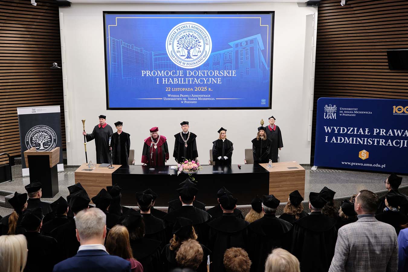 W dniu 22 listopada 2025 r. na Wydziale Prawa Administracji UAM miała miejsce uroczystość promocji habilitacyjnych oraz doktorskich, której towarzyszył akt wręczenia jednego dyplomu doktora habilitowanego oraz dwudziestu dyplomów doktorskich. Paniom i Panom Doktorom dyplomy wręczali Pan Prorektor prof. dr hab. Zbyszko Melosik, Dziekan Wydziału prof. dr hab. Tomasz Nieborak oraz Promotorki i Promotorzy rozpraw doktorskich. Wręczone zostały również nagrody dla laureatek i laureatów Konkursu im. prof. Kazimierza Kolańczyka na najlepsze prace magisterskie obronione na WPiA UAM w roku akademickim 2024/2025.