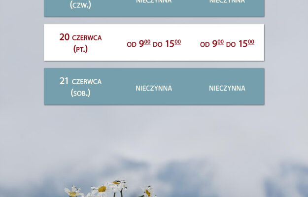 - 19 czerwca (czwartek – Boże Ciało) – NIECZYNNA
